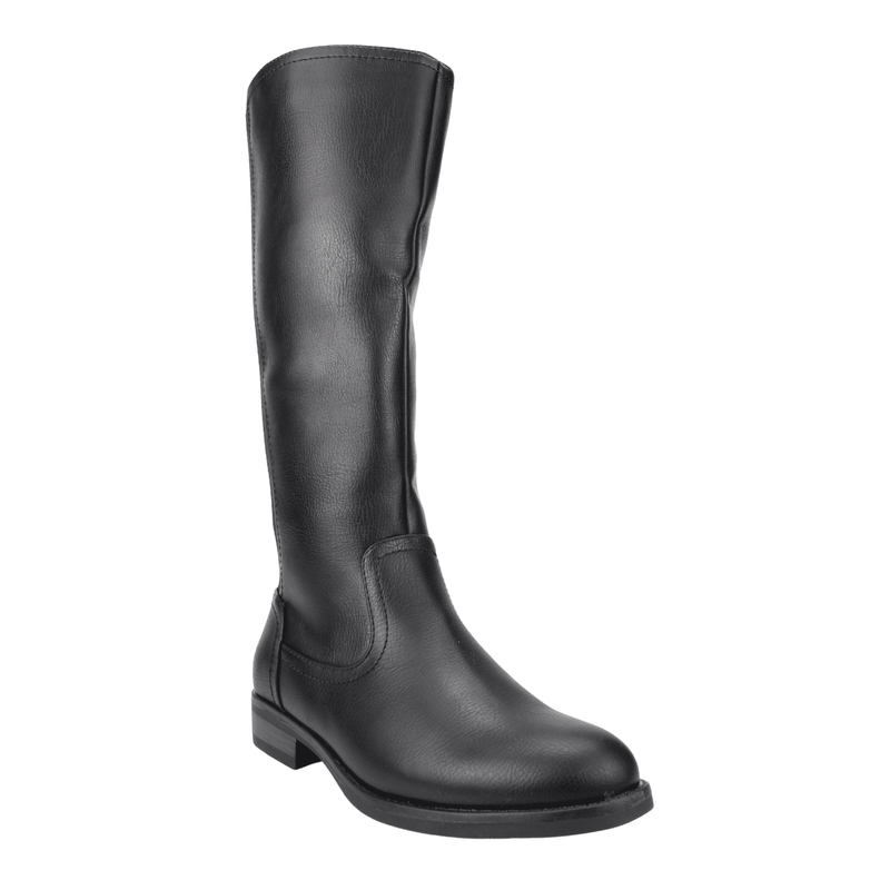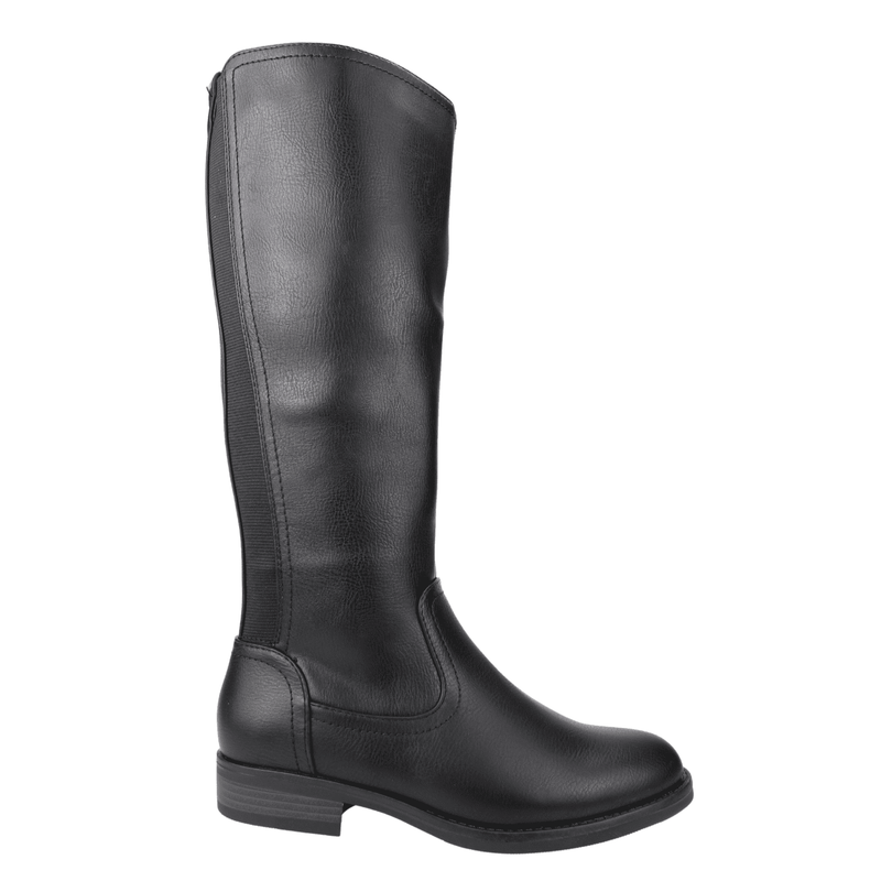 Bota Mujer New Walk color Negro. Estilo casual. Material Capellada: Sintético. Material Forro: Textil. Material Planta: Goma. Diseño de hípica con elástico en parte trasera. Contorno pantorrilla: 36 cm. Tipo de Cierre: Cierre lateral. Tipo de taco: Cuadrado. Altura de taco: 3 cm. Altura caña: 37,5 cm. Tabla de medidas: 35 mide 22,5 cm. 36 mide 23 cm. 37 mide 23,5 cm. 38 mide 24 cm. 39 mide 24,5 cm. 40 mide 25 cm.