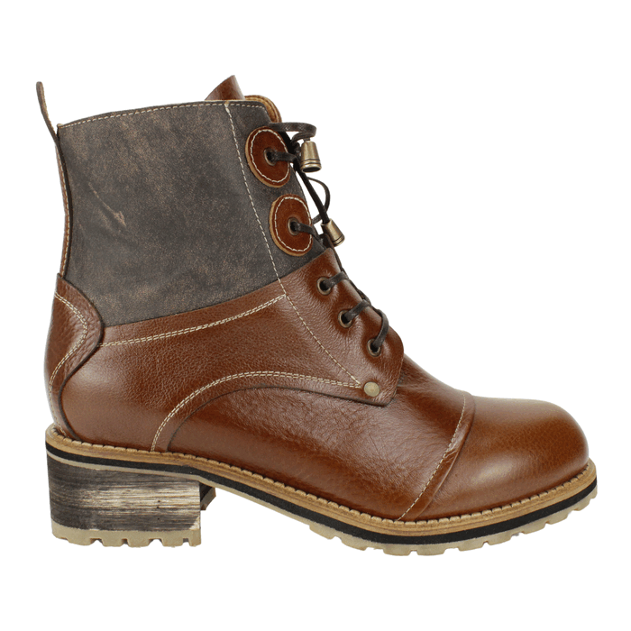 Botín de Mujer Exs de Cuero Marrón. Estilo Militar. Descubre el estilo robusto y versátil de nuestros botines de cuero marrón para mujer estilo combat boot. Confeccionadas en cuero genuino de tonos caramelo y café, estas botas presentan un diseño único con paneles de cuero desgastado en la parte superior y detalles de costuras visibles. Equipadas con cordones ajustables y una práctica cremallera lateral para un calce fácil, además de un tacón bajo y una suela antideslizante para mayor comodidad y tracción. Perfectas para un look casual, urbano o aventurero. Ideales para la temporada de otoño-invierno. Taco Cuadrado de 4,5 cm de alto, caña de 14 cm de altura.