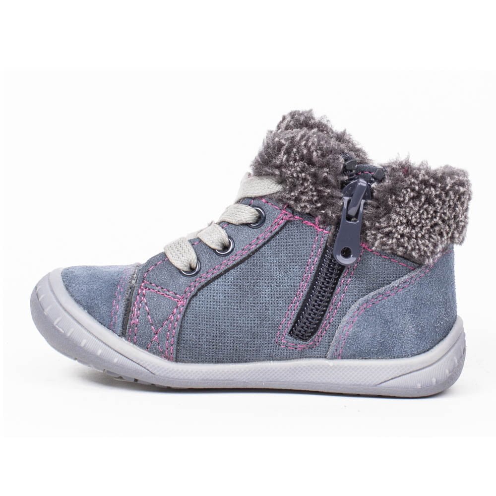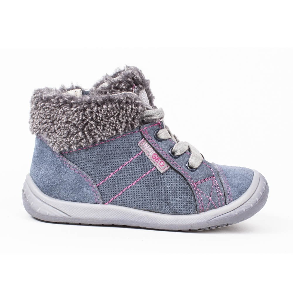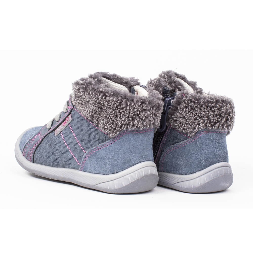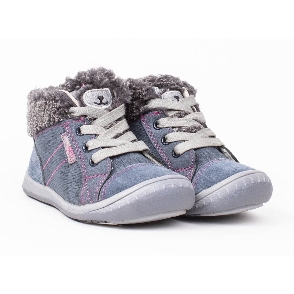 Botín Nat Geo Kids color Azul. Confeccionado en Símil cuero, Algodón y Cuero. Ajuste mediante cierre lateral y cordones tableados color Beige. Símil piel en el borde superior de la caña. Carita y orejitas de oveja decorativa. Planta reforzada de 1,5 cm de alto y caña de 6 cm de alto. Material de Capellada: Símil cuero, algodón y cuero. Material Forro: Cuero y algodón. Material Planta: Goma