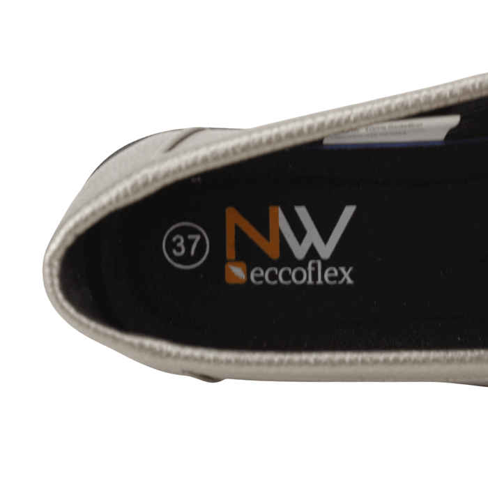 Mocasines de Mujer New Walk color plateado. Estilo Confort y Casuales. ¡El básico indispensable para cualquier armario profesional! Estos mocasines plateados de New Walk Eccoflex ofrecen un estilo sobrio y una comodidad inigualable. Su textura tipo cuero granulado y su suela con amortiguación los hacen ideales para quienes pasan mucho tiempo de pie o caminando. Ajuste tipo Slip On. Plataforma de 3,5 cm de alto y caña de 5,5 cm de altura.
