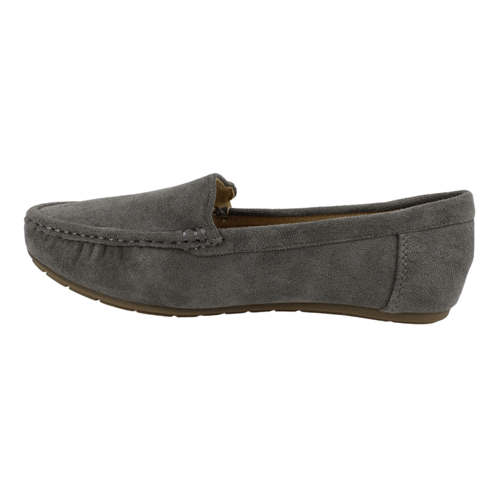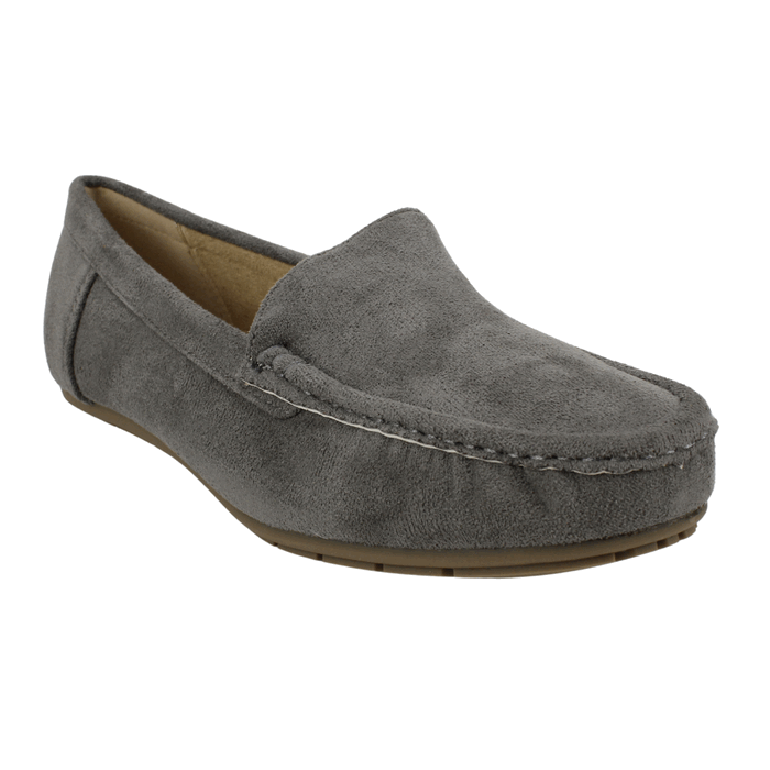 Mocasines de Mujer New Walk color gris. Estilo Confort y Casuales. ¡Eleva tu estilo diario sin sacrificar la comodidad! Estos mocasines de la marca New Walk son el equilibrio perfecto entre elegancia relajada y bienestar. Diseñados con una textura suave tipo gamuza y un tono gris, son el calzado ideal para completar un look de oficina o un outfit casual de fin de semana. Su diseño clásico con costuras reforzadas a la vista y suela plana flexible te permiten caminar durante horas con total ligereza. Es el básico que no puede faltar en tu clóset para las temporadas de primavera y otoño. Ajuste tipo Slip On. Planta de 1 cm de alto y caña de 6 cm de altura.