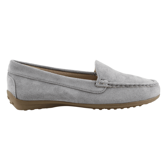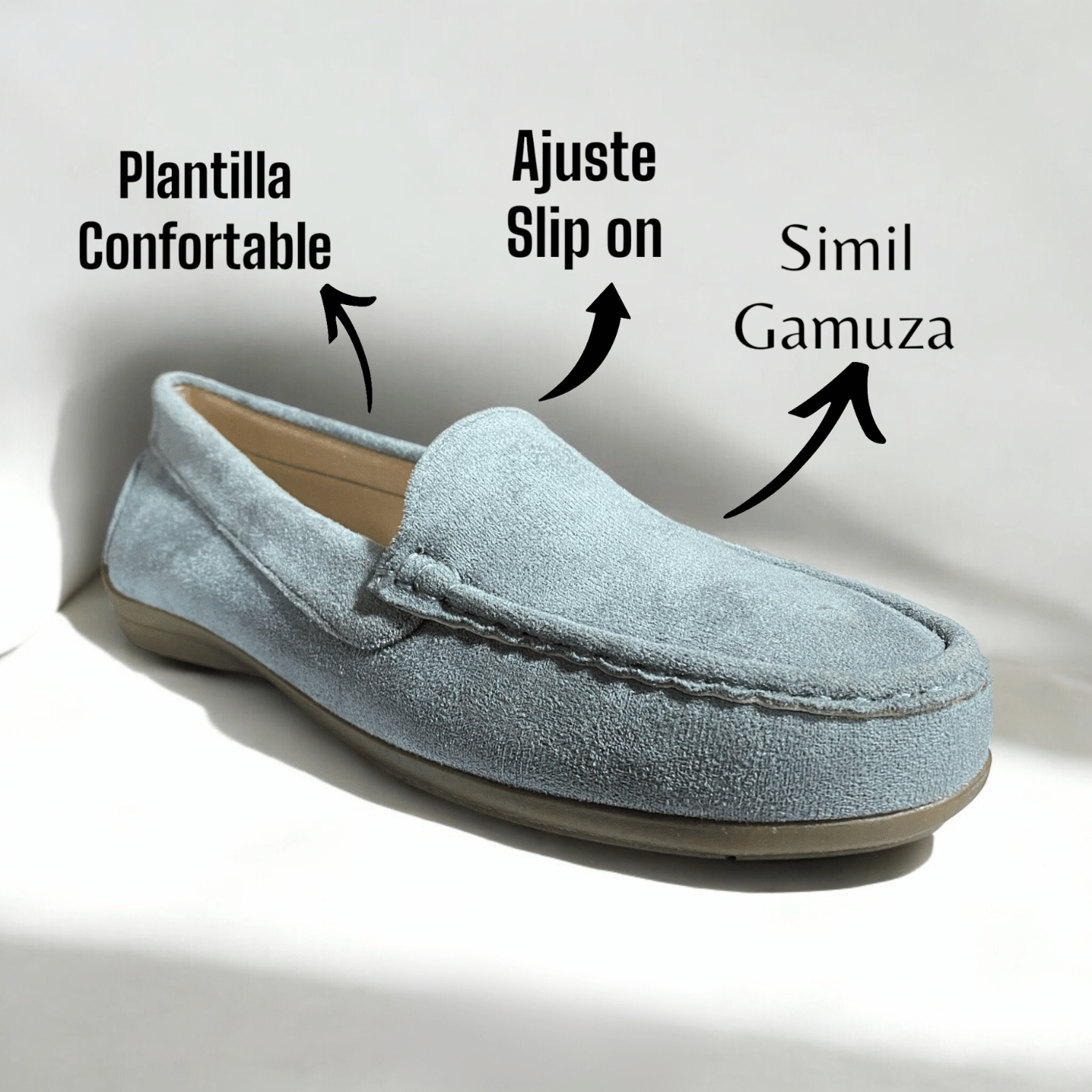 Mocasín de Mujer New Walk color celeste. Estilo casual. Capellada en símil gamuza, calzado liviano y fresco, con plantilla confort de cuero, especial para el uso diario. Ajuste tipo Slip On. Planta de 1,5 cm de alto y caña de 5,5 cm de altura.