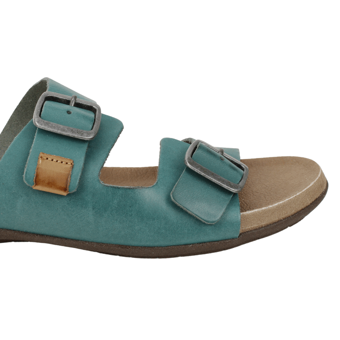 Sandalia Mujer Exs Cuero color Turquesa. Estilo Casual. Atrévete a llevar color y máxima comodidad este verano con estas sandalias slide de inspiración anatómica. Presentan un vibrante color turquesa que añade un toque pop a cualquier outfit casual. El diseño de doble tira ajustable con hebillas metálicas garantiza un ajuste personalizado y seguro para tu pie. La plantilla es contorneada y suave (tipo confort o anatómica), ideal para brindar soporte de arco y amortiguación durante todo el día. Perfectas como sandalias de piscina, playa, o simplemente como un calzado diario cómodo y a la moda. Ajuste mediante correa y broche. Taco plano de 3 cm de altura.