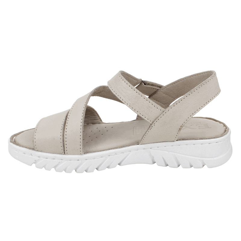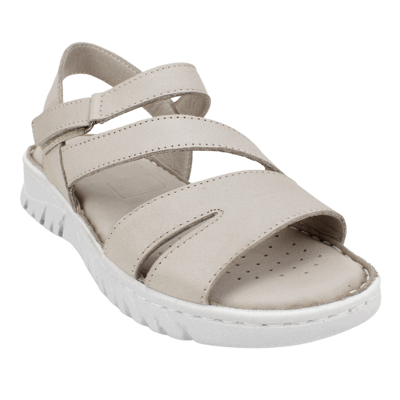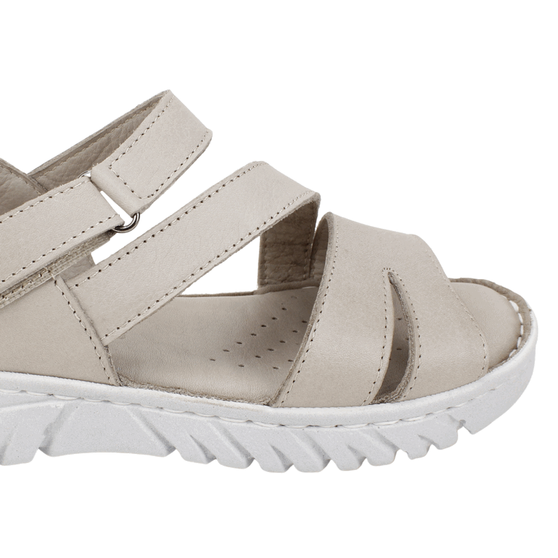 Sandalia de Mujer Exs Cuero color gris de fabricación turca. Estilo Confort. Diseñadas para la máxima comodidad, estas sandalias grises son perfectas para quienes buscan un caminar ligero. Su estructura de triple correa y suela con diseño anatómico las hacen ideales para paseos o actividades diarias que requieren soporte extra. Ajuste mediante velcro. Plataforma de 3 cm de altura.