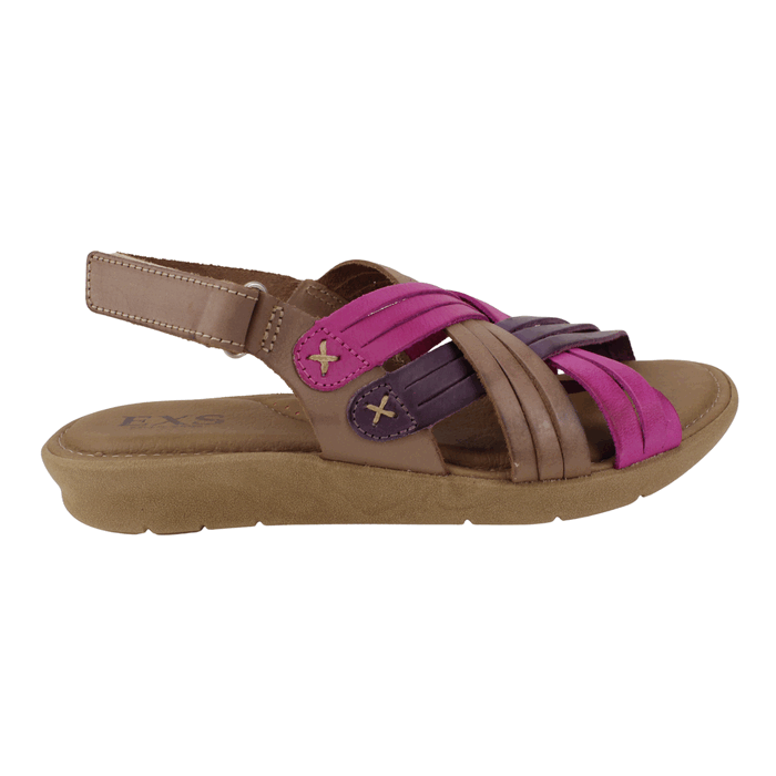 Sandalia Exs Confort Tiras Cuero Burdeo