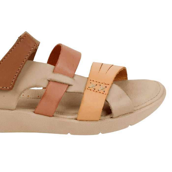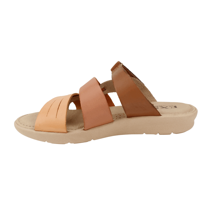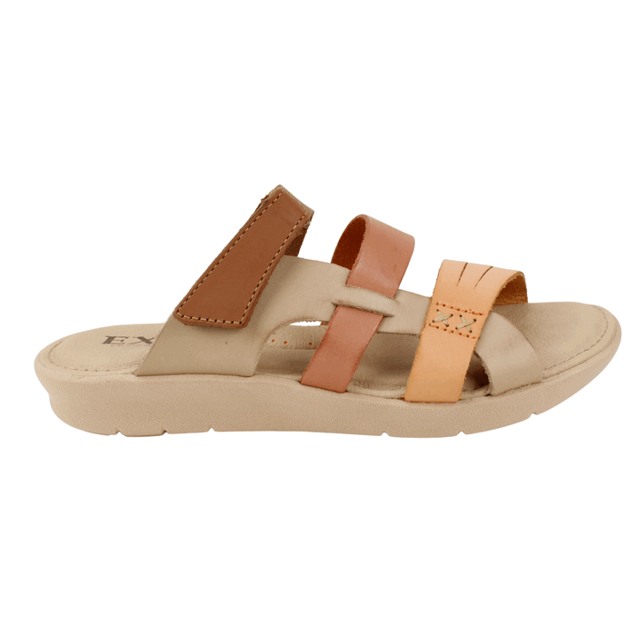 Sandalia Mujer Exs Cuero color Rosado. Estilo Casual. Disfruta de la frescura y el confort del verano con estas sandalias slide de diseño versátil. Las tiras anchas de cuero en una atractiva paleta de tonos tierra y nude se cruzan de forma elegante sobre el empeine. El detalle de costuras artesanales y los cortes decorativos en una de las tiras aportan un toque boho chic único. Su diseño plano y la suela ligeramente acolchada están pensados para el uso diario, ofreciendo una pisada suave y cómoda. Son el calzado de verano perfecto para combinar con vestidos, shorts o jeans. Fáciles de calzar, son un imperdible para un estilo relajado y natural. Ajuste tipo Slip On. Planta de 3 cm de altura.