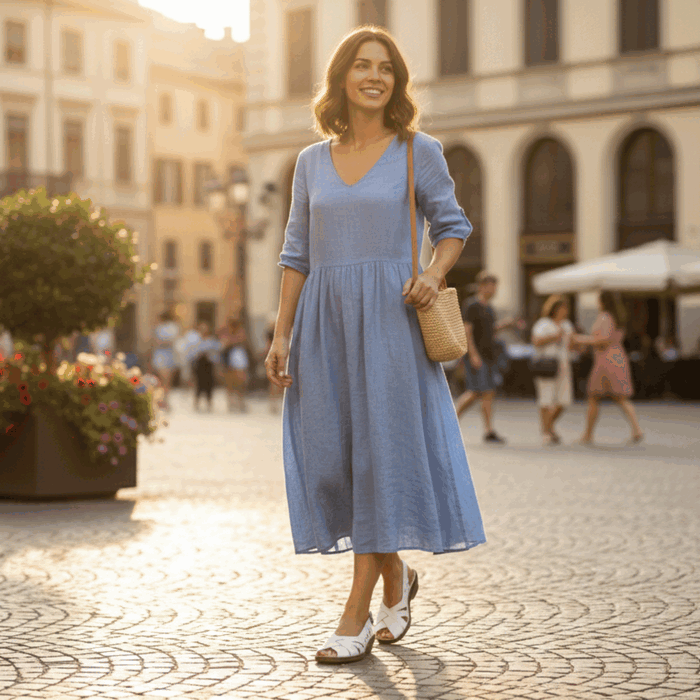 Sandalia de Mujer New Walk color blanco. Estilo casual. Disfruta del verano con la máxima comodidad. Estas sandalias en color blanco cuentan con un diseño de cortes láser que permiten una ventilación total del pie. Su estructura anatómica y la cuña de altura media con acabado tipo madera ofrecen el soporte ideal para caminar largas distancias sin fatiga. Incluye una correa ajustable con hebilla para un calce seguro y personalizado. Taco Cuadrado de 4 cm de alto.