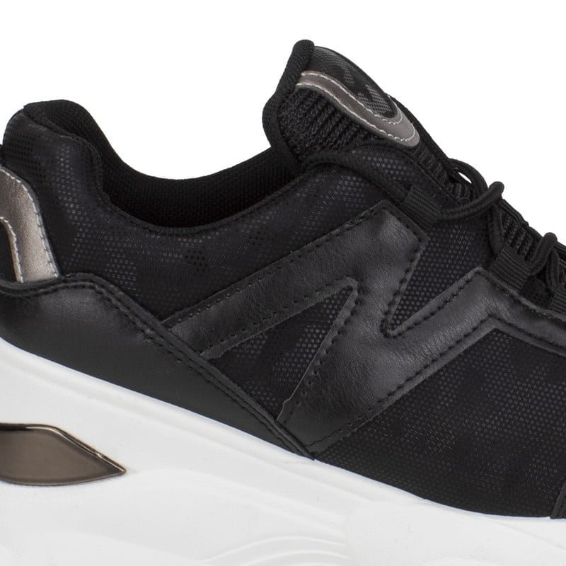 Zapatilla Mujer Alexander color Negra. Estilo urbano. Material Capellada: Síntetico. Material Forro: Textil. Material Planta: Poliester. Diseño liso con detalles metalizados. Ajuste mediante cordones. Planta de 7 cm de altura cm. Altura de caña de 6 cm. Tabla de medidas: 35 mide 22 cm / 36 mide 23 cm / 37 mide 24 cm / 38 mide 25 cm / 39 mide 25,5 cm / 40 mide 26 cm.