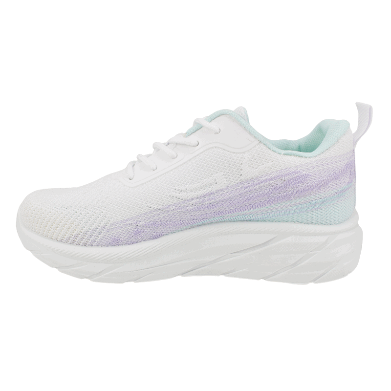 Zapatilla de Mujer New Walk color turquesa. Estilo Urbano. Dale un respiro a tus pies con las nuevas zapatillas urbanas. Diseñadas para quienes buscan un equilibrio perfecto entre la comodidad deportiva y el estilo tendencia de esta temporada. Su exterior de malla transpirable no solo las hace increíblemente livianas, sino que también aporta texturas dinámicas en tonos lila y verde menta que resaltan sobre el blanco puro. Son ideales para tus caminatas diarias, ir al gimnasio con estilo o simplemente para completar un outfit casual de fin de semana. ¡La plataforma de PVC de alto impacto te garantiza una pisada suave durante todo el día!. Ajuste mediante cordones redondos. Plataforma de 4 cm de alto y caña de 7 cm de altura.