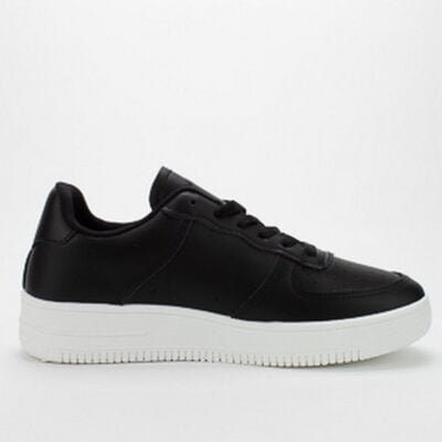 Zapatilla New Walk Negra de Hombre. Estilo Urbano. Capellada Lisa de Pu. Malla Antitranspirante. Forro de Poliester. Planta de TPR de 3.5 cm. Caña de 7 cm. Planta Confort.