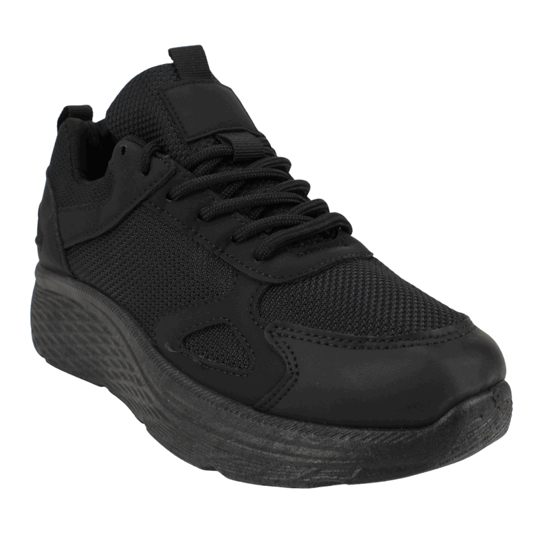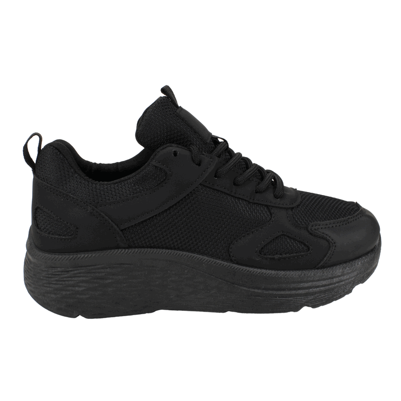 Zapatilla de Mujer New Walk color Azul. Estilo Urbano y Confort. Esta zapatilla urbana en color negro destaca por su diseño de plataforma robusta y construcción ultraliviana, ideal para un estilo de vida activo y moderno. Su capellada combina malla textil transpirable con refuerzos sintéticos para mayor durabilidad, mientras que su suela de PVC inyectado garantiza una amortiguación superior en cada paso. Con un ajuste de cordones reforzados y tiradores ergonómicos, es el calzado perfecto para quienes buscan versatilidad, confort y una estética streetwear sofisticada sin complicaciones. Ajuste mediante cordones redondos. Plantilla confort especial para el uso diario. Plataforma de 4 cm de alto y caña de 6,5 cm de altura.