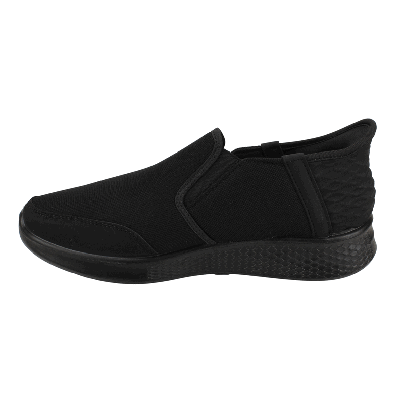 Zapatilla de Hombre New Walk color Negro. Estilo Casual. Esta zapatilla de diseño contemporáneo destaca por su estética Total Black y una silueta robusta pero ligera, ideal para el ritmo urbano diario. Su estructura combina una malla textil de alta transpirabilidad con refuerzos sintéticos mate que proporcionan estabilidad y una mayor resistencia al desgaste. La suela de plataforma con textura orgánica ofrece una amortiguación superior, mientras que los tiradores en talón y lengüeta facilitan un calce rápido, convirtiéndola en la opción perfecta para quienes buscan confort y un estilo streetwear versátil. Ajuste tipo Slip On. Plantilla confort especial para el uso diario. Planta de 3 cm de alto y caña de 7 cm de altura.