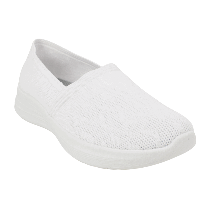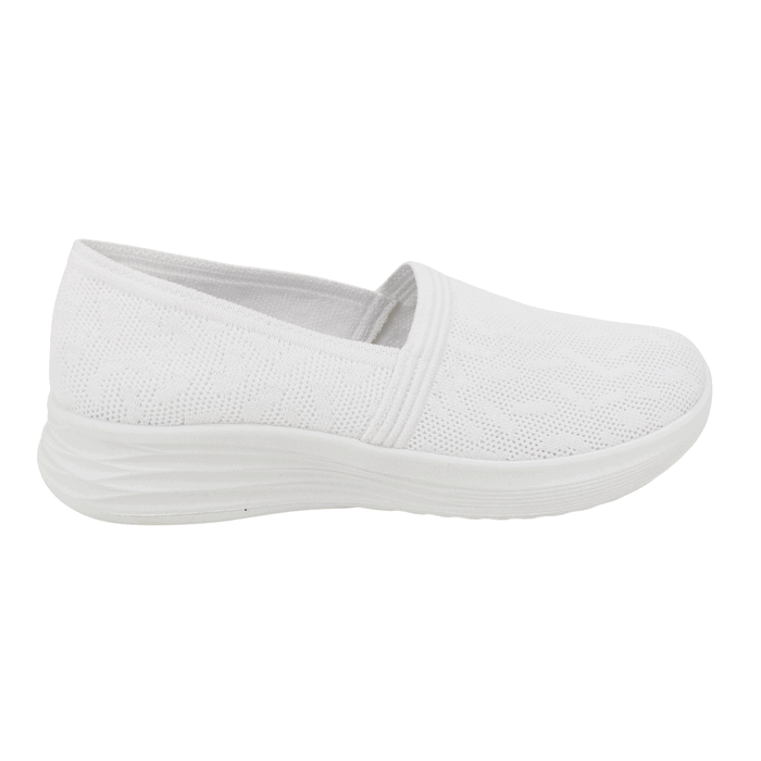 Zapatilla de Mujer New Walk color blanco. Estilo Casuales Logra un look impecable y minimalista con estas zapatillas slip-on en color blanco total. Este modelo destaca por su diseño limpio y su construcción en tejido de punto de alta calidad, ofreciendo una versatilidad inigualable para cualquier ocasión. Gracias a su estructura flexible y su plantilla tecnológica, disfrutarás de una comodidad superior sin complicaciones de cordones. Plantilla confort que proporciona la perfecta amortiguación para el uso diario. Ajuste tipo Slip On. Plataforma de 3,5 cm de alto y caña de 5 cm de altura.