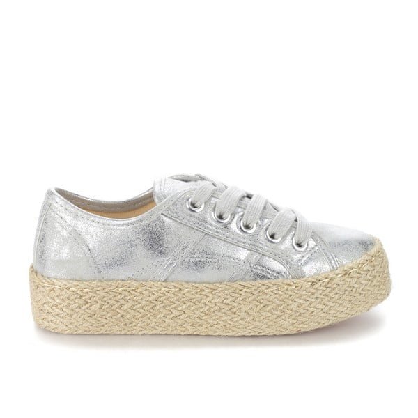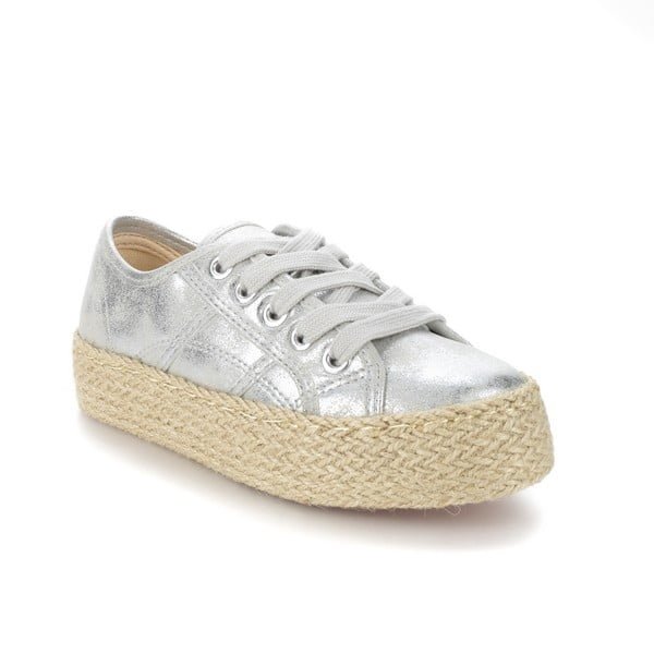 Zapatilla Verazzi Plateada para Niñas. Estilo Casual. Planta de Yute. Capellada símil cuero. Forro símil cuero. Planta de Yute de 3 cm de altura