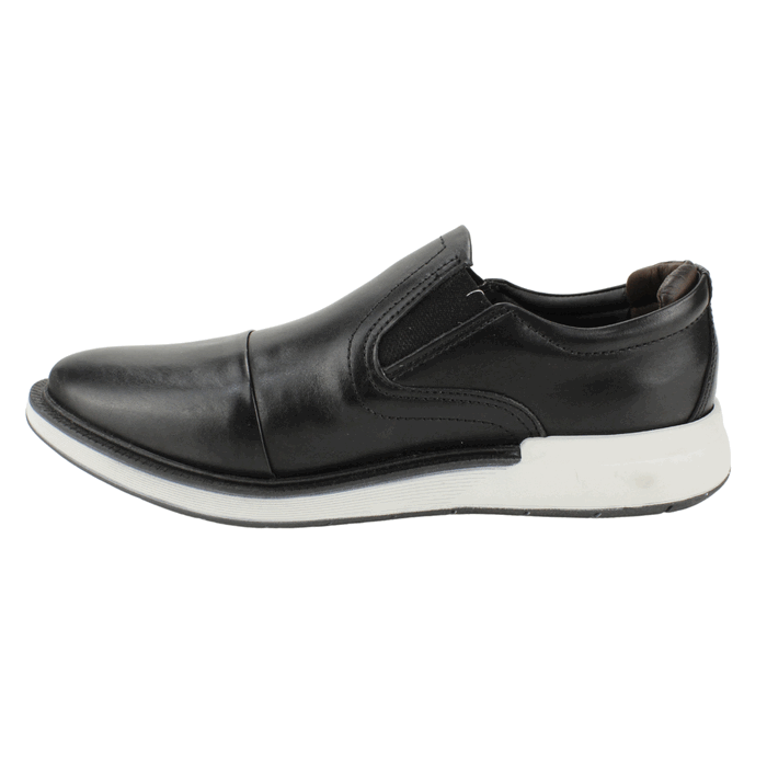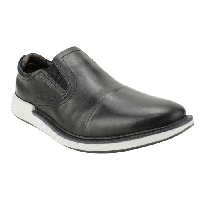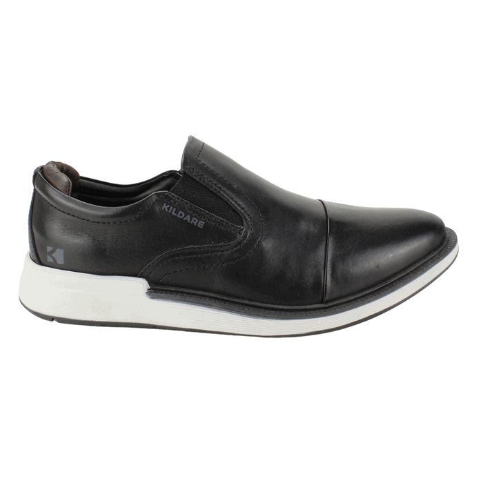 Zapato de Hombre Kildare de Cuero color negro. Estilo Casuales. Descubre la combinación perfecta de elegancia y comodidad con estos zapatos slip-on negros para hombre de Kildare. Confeccionados en cuero genuino de alta calidad, presentan un diseño versátil que mezcla la sofisticación de un zapato clásico con la funcionalidad de una zapatilla casual. Su sistema sin cordones con paneles elásticos laterales facilita el calce, mientras que la suela blanca y negra con diseño deportivo ofrece una pisada ligera y amortiguada. Ideales para el día a día, la oficina casual o eventos informales. Un básico imprescindible de calzado masculino para el confort y el estilo. Planta de 3,5 cm de alto, caña de 6 cm de altura.