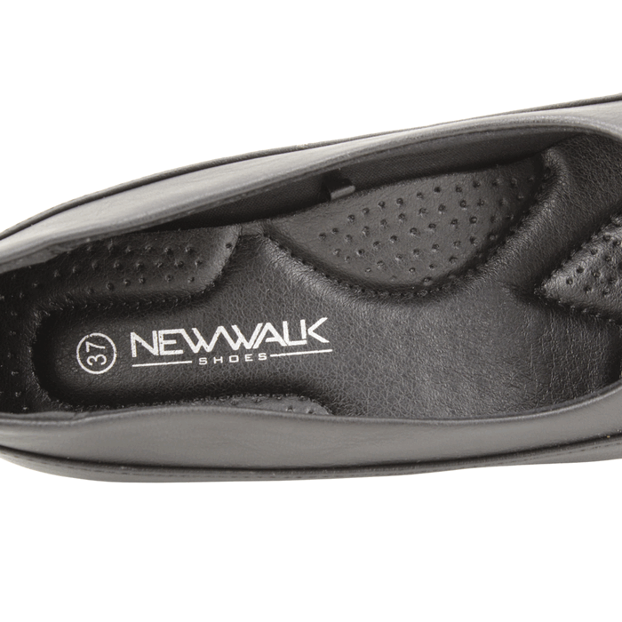 Zapato de Mujer New Walk Cuequero color negro. Estos elegantes zapatos de tacón para mujer son la combinación perfecta de moda y funcionalidad. Su diseño clásico se realza con un tacón ancho y una sutil puntera cuadrada, ofreciendo un toque moderno a un estilo atemporal. El tacón, robusto y estable, te permite mantener la comodidad durante todo el día, mientras que la plantilla acolchada proporciona un soporte adicional para tus pies. Ideales para el entorno laboral, reuniones o cualquier ocasión formal donde necesites verte impecable sin sacrificar el bienestar. Ajuste tipo Slip On. Taco Cuadrado de 6 cm de alto y caña de 5,5 cm de altura.